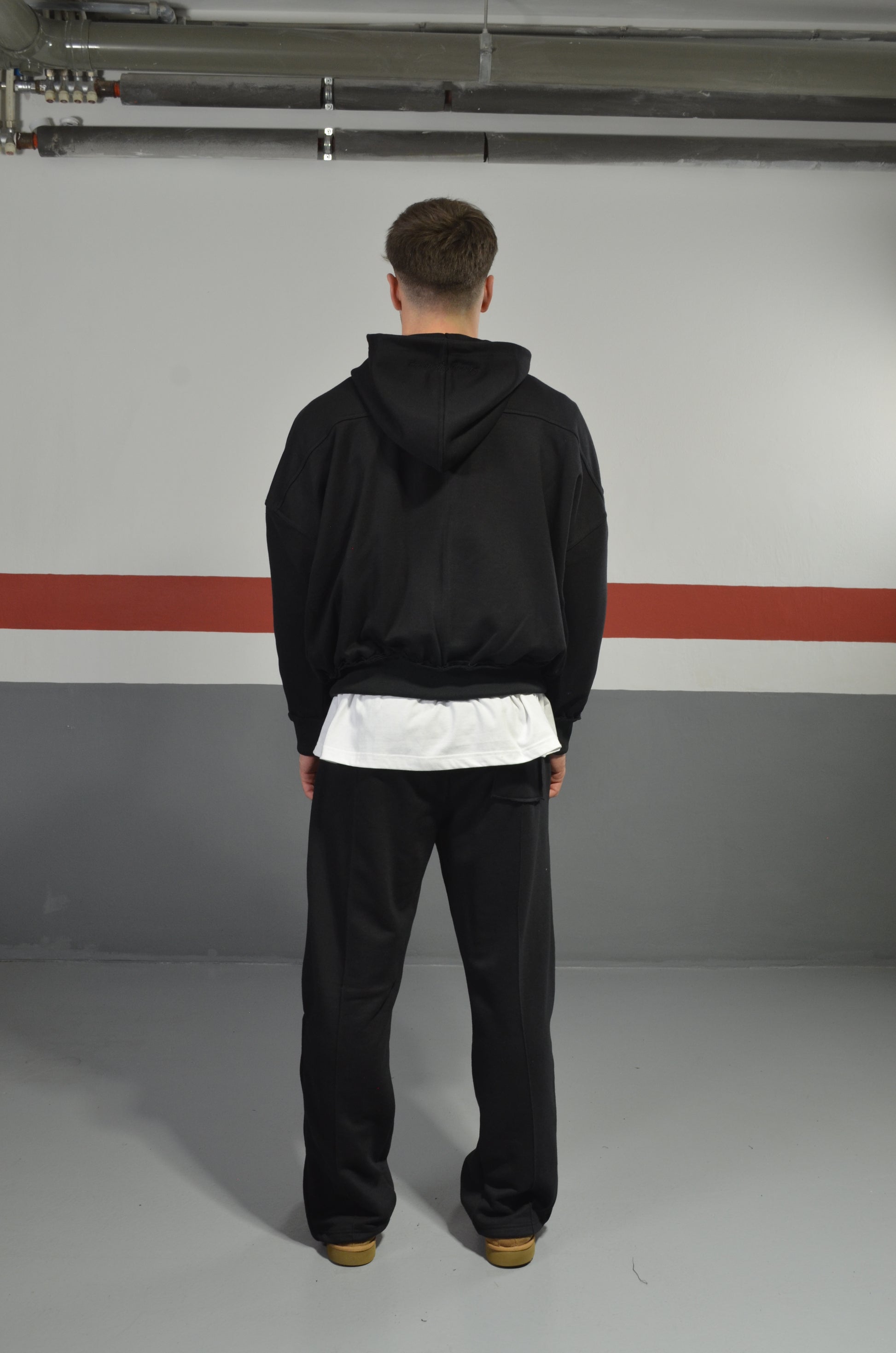 Ultra-heavyweight oversize boxy fit hooded sweatshirt in black color.